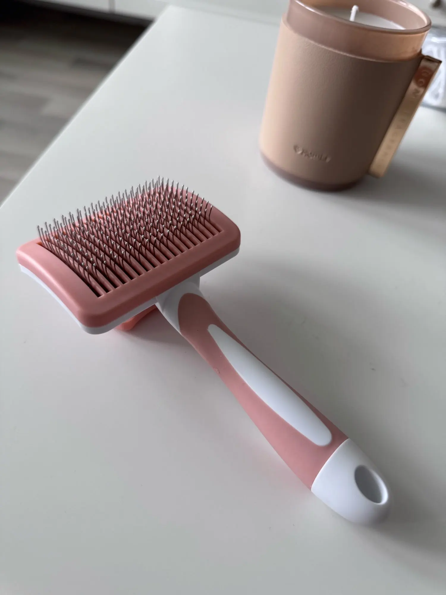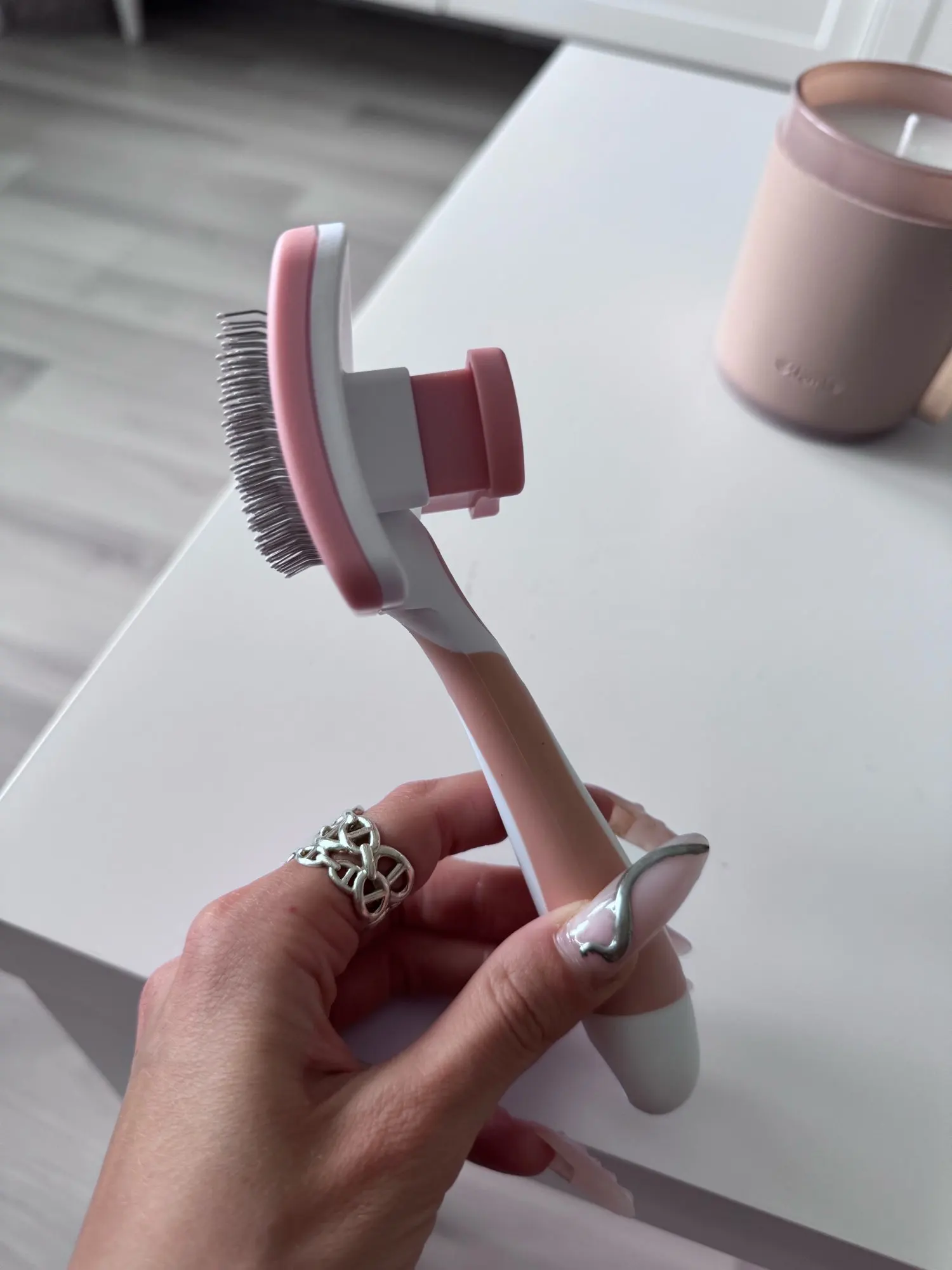 This self-cleaning slicker brush for dogs and cats is not only effective for deshedding but also helps promote a healthier coat by stimulating natural oils in your pet’s skin. The fine, angled bristles are gentle yet efficient, making it safe for sensitive pets while still tackling stubborn tangles.