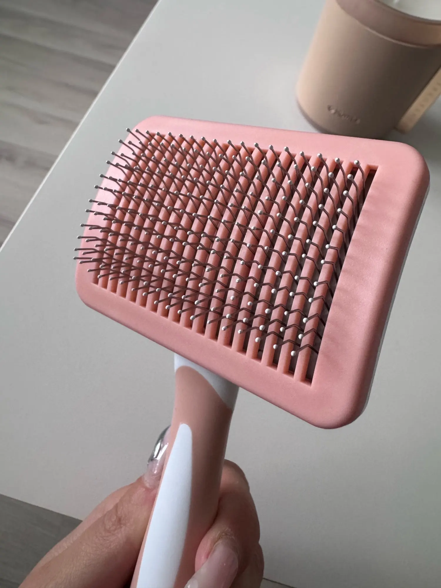 Featuring retractable bristles, this dog and cat hair brush is effortless to clean—simply press the button to retract the bristles and wipe away collected hair in seconds. The ergonomic handle ensures a comfortable grip, reducing hand strain during grooming sessions, whether you’re brushing a small kitten or a large dog.